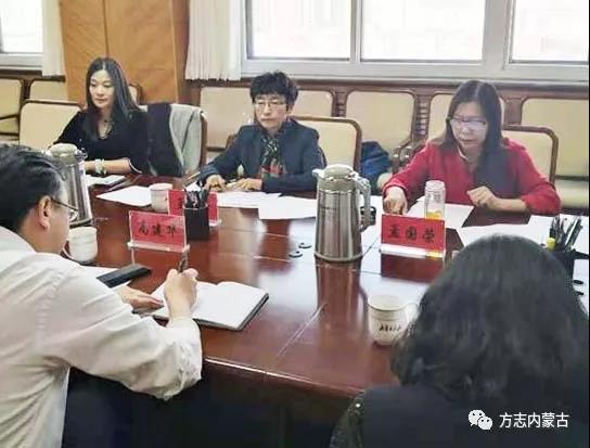 2018年11月1日下午,自治区地方志办公室副主任孟秀芳,自治区志业务处副处长、第二攻坚专项组长孟国荣,第二攻坚专项组副组长何晓伟一行3人赴自治区民政厅调研《中共内蒙古自治区委党史和地方志研究室网站志·民政志》(二轮)(以下简称《民政志》)编纂情况并召开座谈会。自治区民政厅老龄委办公室专职副主任、民政厅办公室主任高建华,副主任陈玉,财务处处长徐江花等相关人员参加会议。