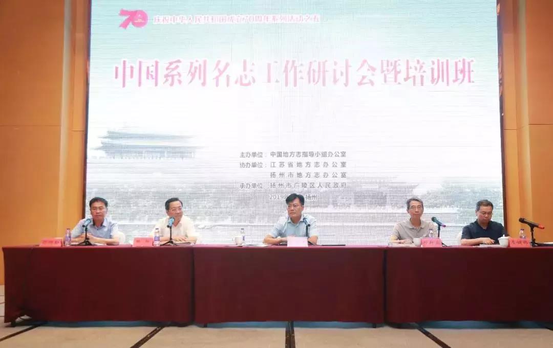 2019年8月9日,由中国地方志指导小组办公室(以下简称中指办)主办的庆祝中华人民共和国成立70周年系列活动之五——中国系列名志工作研讨会暨培训班在扬州广陵召开。中国地方志指导小组秘书长、中指办主任冀祥德出席并讲话。江苏省地方志办公室党组书记、主任左健伟,中共扬州市广陵区委副书记刁顺勤分别致辞。开幕式由中指办副主任邱新立主持。扬州市委常委、秘书长韩骅,广陵区人民政府副区长万潇潇参加开幕式。