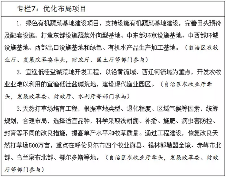 完善农牧业补贴机制。继续保持农牧业政策连续性和稳定性,调整改进“黄箱”支持政策,逐步扩大“绿箱”支持政策实施规模和范围,提高农牧业补贴效能。健全粮食主产区利益补偿机制,加大对农畜产品主产区和重点生态功能区的转移支付力度。强化农牧业补贴对调动农民积极性、稳定农牧业生产的导向作用,完善补贴办法和发展方式,实行“三补合一”、玉米生产者补贴,落实农畜产品价格补贴,增强补贴实效,确保所有涉农涉牧补贴全部纳入“一卡通”发放。完善强制免疫疫苗、病畜扑杀、病死动物无害化处理和防疫员工作补助等补贴制度。健全农牧业生产关键技术应用与服务支持政策,完善农牧业防灾减产稳产增产补助方式,继续支持关键技术良法推广。落实渔业用水、用电、用地优惠政策,研究制定宜渔低洼盐碱荒地开发和大型水域生态综合治理专项政策,大力发展现代设施渔业。(自治区财政厅牵头,发展改革委、农牧业厅、银监局、保监局、扶贫办等部门参与)