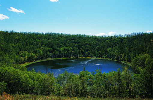 阿尔山天池被认为是全国继“天山天池”、“长白山天池”的第三大天池,且各具特色:即长白山天池有出口无入口;天山天池有入口无出口;阿尔山天池既无出口又无入口。湖面海拔1 320.3米,从山下攀登到山顶要登436个台阶。天池四面环山,无论是久旱无雨,还是阴雨连绵,天池的水始终不涨不落,也不知道池水究竟有多深。同时,在距阿尔山东北84公里处,有一个与阿尔山天池遥相呼应的地池,因水面高于地面10余米而得名。