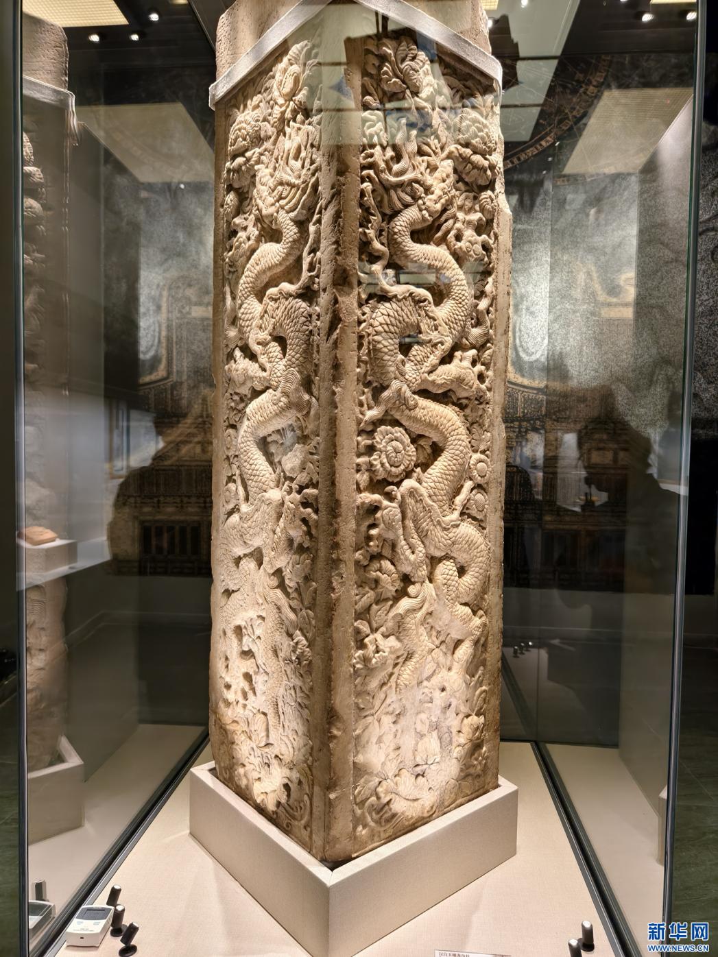 元上都遗址附近的锡林郭勒盟文化遗产博物馆内,展陈元上都遗址出土的雕龙柱。