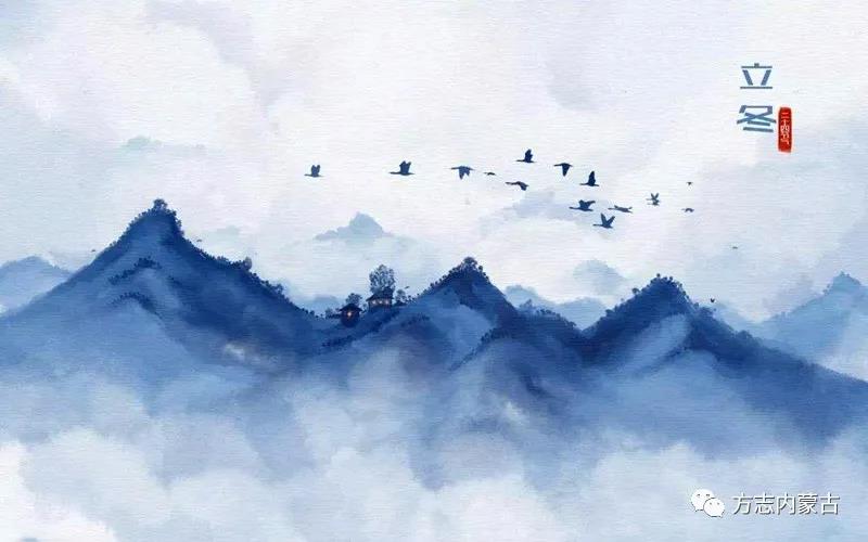 二候地始冻。立冬后五日“地始冻”,冰壮曰“冻”,地冻为凝结,“蔼蔼野浮阳,晖晖水披冻”。