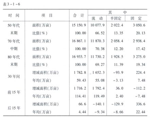 20世纪80年代末期,沙地面积4119.6万亩,其中,流动沙地占31.56%。