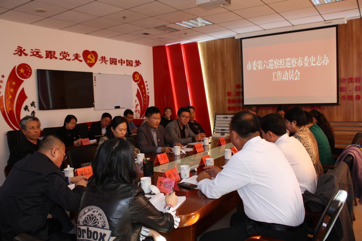 10月16日上午,通辽市委第六巡察组巡察市委史志办工作动员会召开。会前,通辽市委巡察办副主任于梅兰主持召开见面沟通会,传达了自治区党委常委、通辽市委书记***关于巡察工作的重要讲话精神。动员会上,通辽市委第六巡察组长杨洪武就即将开展的巡察工作作了动员讲话,巡察办于梅兰主任就配合做好巡察工作提出具体要求。通辽市委史志办党支部书记、主任程志峰主持会议并作表态发言。