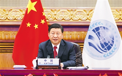 9月17日,国家主席习近平在北京以视频方式出席上海合作组织和集体安全条约组织成员国领导人阿富汗问题联合峰会并发表重要讲话。 新华社记者 刘 彬摄