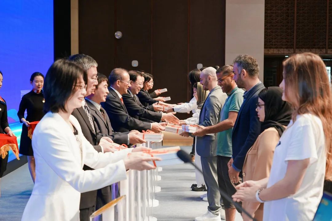 与会嘉宾和专家学者为浙江大学留学生代表赠送《习近平外交演讲集》第一卷、第二卷英文版。