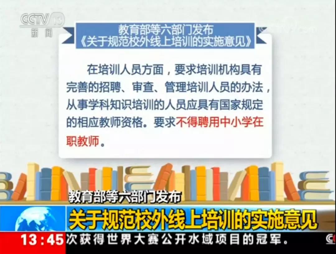 师资方面,意见要求,具有完善的招聘、审查、管理培训人员的办法,师资队伍相对稳定,不得聘用中小学在职教师。从事语文、数学、英语、思想政治、历史、地理、物理、化学、生物等学科知识培训的人员,应当具有国家规定的相应教师资格。