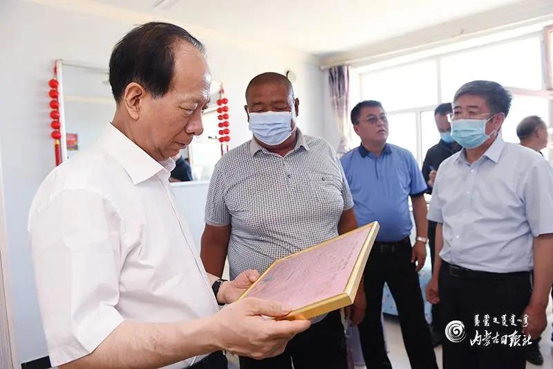 7月14日,自治区党委书记、人大常委会主任石泰峰深入乌兰察布市四子王旗吉生太镇糖坊卜子行政村下坤兑新村,走访贫困户了解生产生活情况。