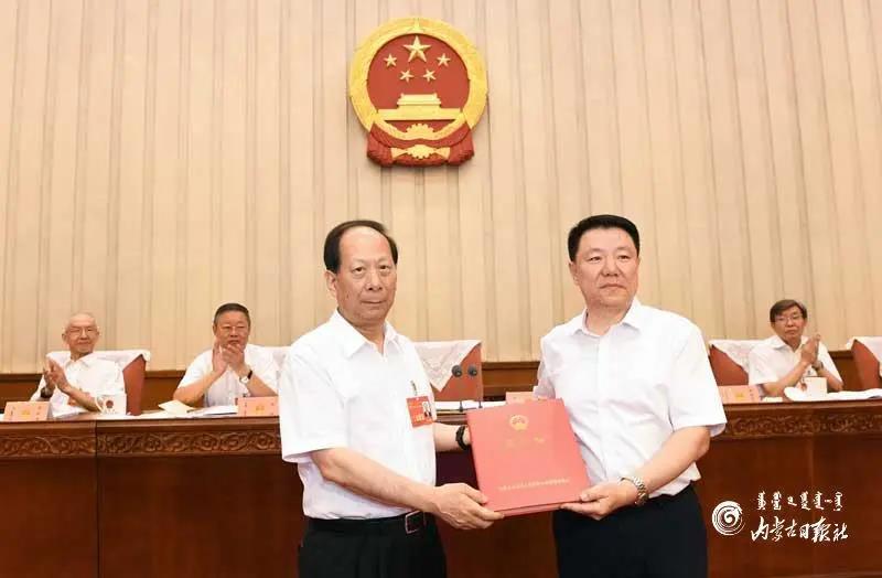 7月23日,自治区党委书记、人大常委会主任石泰峰出席自治区十三届人大常委会第二十一次会议第三次全体会议,并为新任命的自治区副主席奇巴图颁发任命书。