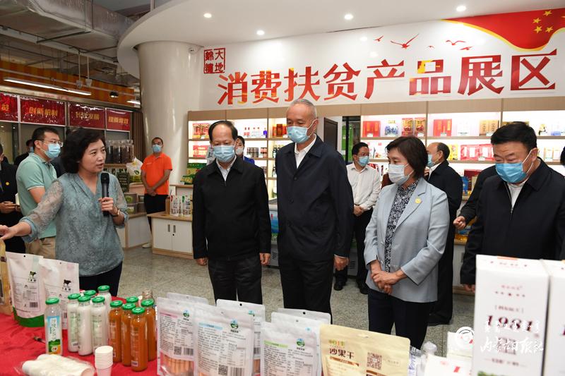 9月26日,自治区党政代表团在北京对接扶贫协作并学习考察。中共中央政治局委员、北京市委书记蔡奇,同自治区党委书记、人大常委会主任石泰峰,自治区党委副书记、自治区主席布小林,在北京市消费扶贫双创中心海淀分中心考察。内蒙古日报社融媒体记者 袁永红 摄