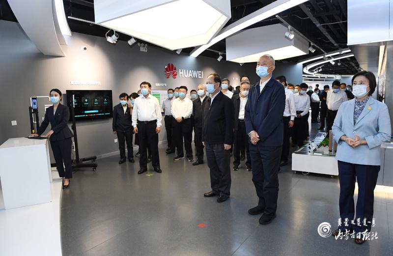 9月26日,自治区党政代表团在北京对接扶贫协作并学习考察。中共中央政治局委员、北京市委书记蔡奇,同自治区党委书记、人大常委会主任石泰峰,自治区党委副书记、自治区主席布小林,在北京市海淀城市大脑展示体验中心考察。内蒙古日报社融媒体记者 袁永红 摄