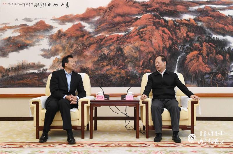 9月28日上午,自治区党委书记、人大常委会主任石泰峰在呼和浩特会见国务院联防联控机制秋冬季新冠肺炎疫情防控专项督查组长、外交部副部长罗照辉。内蒙古日报社融媒体记者袁永红摄