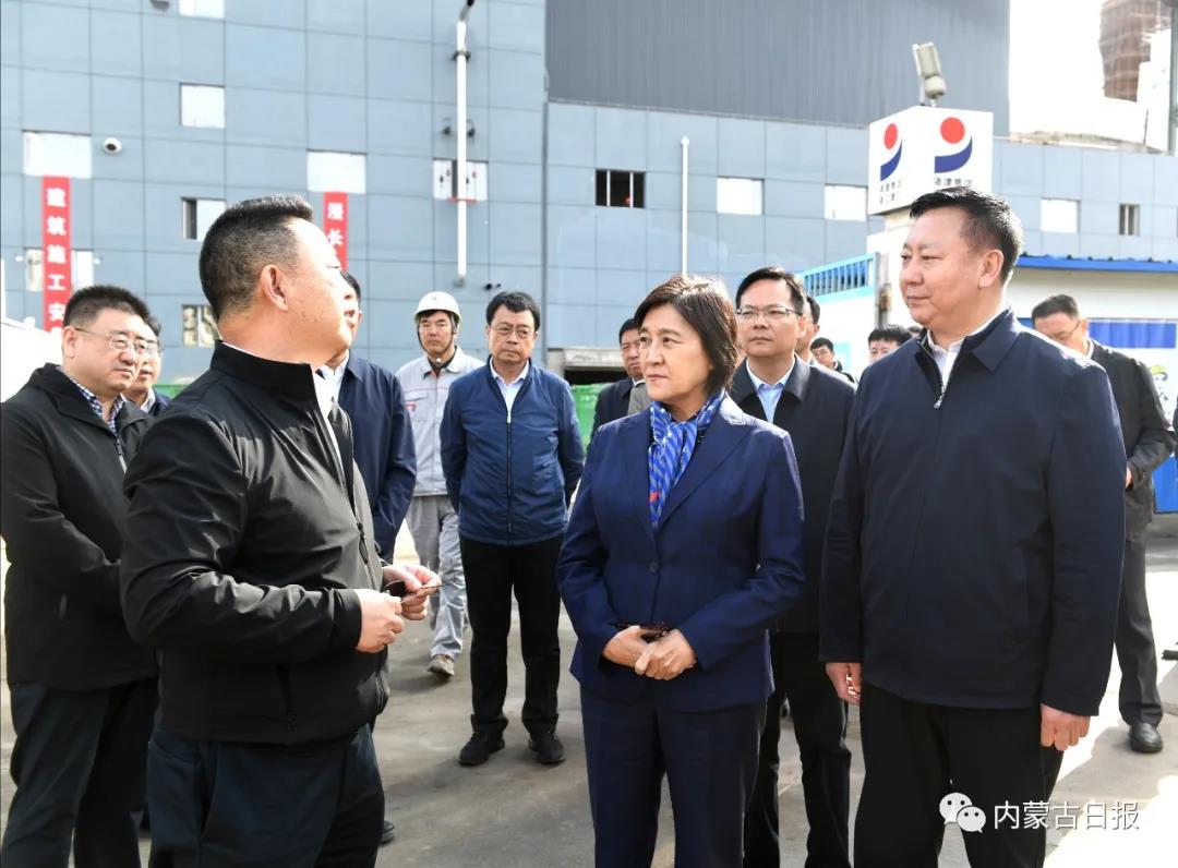 10月11日,自治区党委副书记、自治区主席布小林来到乌海市乌达区内蒙古兴发科技有限公司有机硅新材料一体化循环项目现场,深入了解企业技术路线、环保装置等方面情况。记者 韩卿立 摄