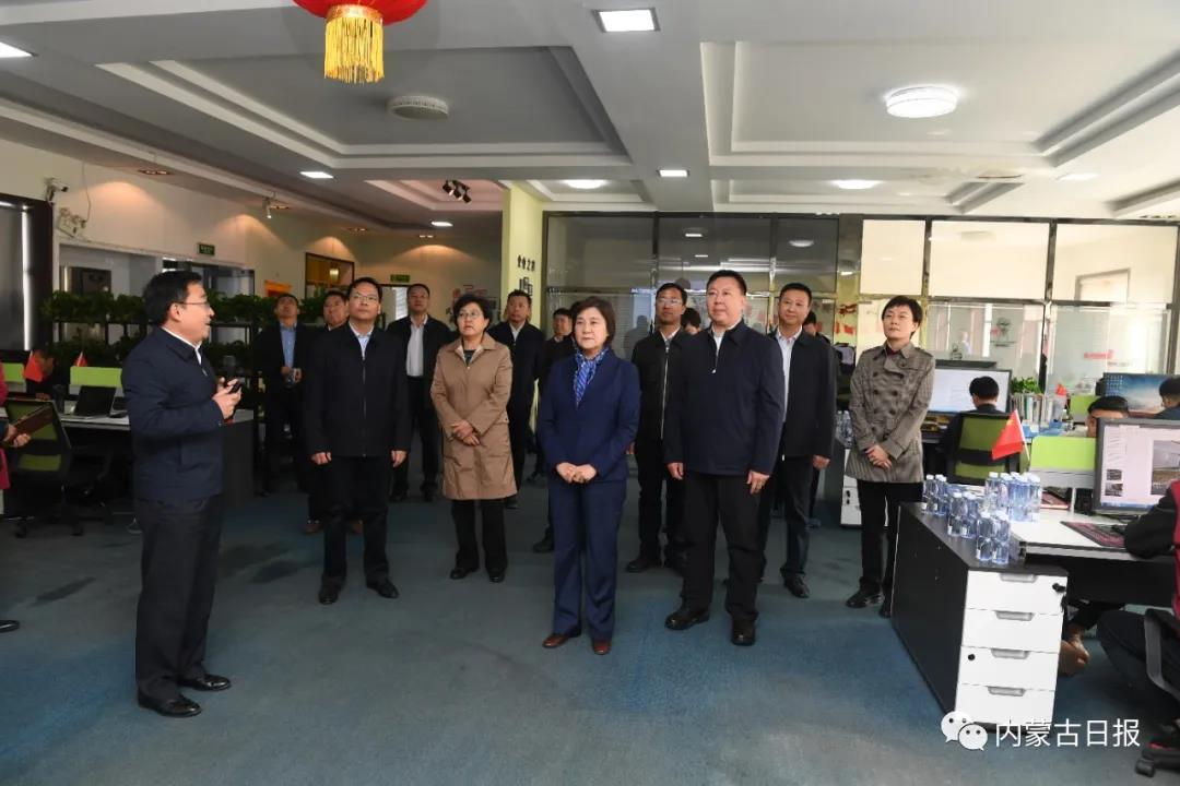 10月11日,自治区党委副书记、自治区主席布小林在乌海市乌达区飞狮互联网平台公司,通过矿区环境智慧管控系统平台和矿区扬尘环境监测预警系统平台,查看、了解乌海市矿山企业环境整治情况。记者 韩卿立 摄