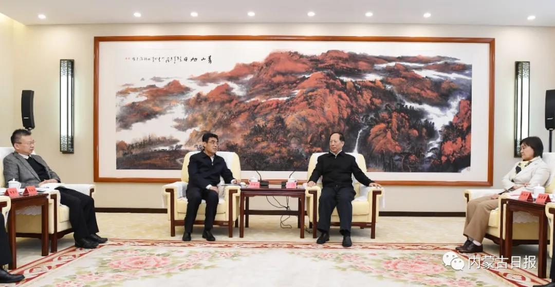 签约仪式前,石泰峰、布小林会见了舒印彪一行。石泰峰说,华能集团是内蒙古的长期合作伙伴,多年来为自治区经济社会发展作出了重要贡献。面向“十四五”,我们愿与华能集团加大合作力度、拓展合作空间、提升合作层次,在科技研发项目建设、清洁能源开发利用等方面实现优势互补、共赢发展。舒印彪表示,“十四五”时期,华能集团将继续加大投资力度,支持内蒙古打造规模化、数字化、多能互补的能源基地,加快发展现代能源经济。