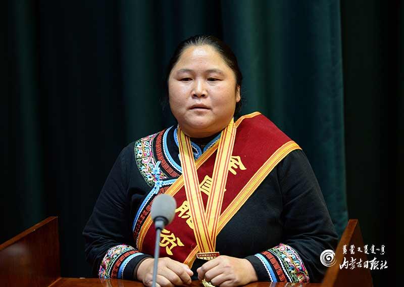 贵州省妇联副主席(兼)、麻怀联村党委书记,麻怀村党支部书记邓迎香作报告。内蒙古日报社融媒体记者 袁永红 摄