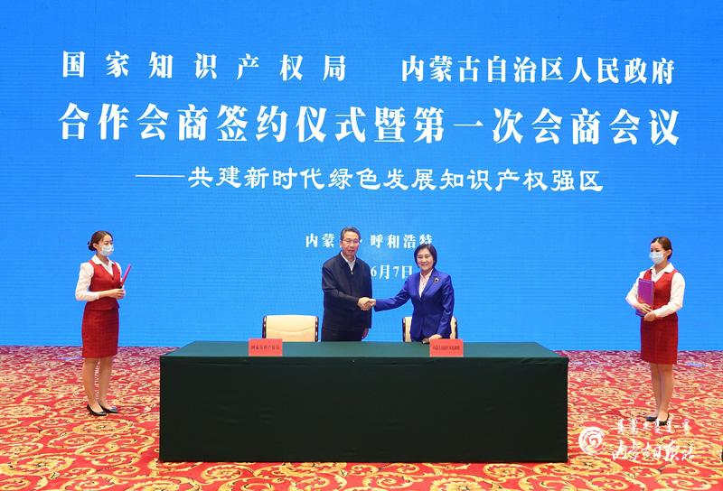 自治区党委副书记、自治区主席布小林与国家知识产权局党组书记、局长申长雨代表双方签署《国家知识产权局内蒙古自治区人民政府知识产权强区合作会商议定书》。根据议定书,双方将围绕推动知识产权支撑产业绿色转型、加强知识产权区域协调发展、推动知识产权助力乡村振兴等方面开展合作,推动内蒙古知识产权强区高标准建设,对于内蒙古立足新发展阶段、贯彻新发展理念、服务和融入新发展格局,坚定不移走好以生态优先、绿色发展为导向的高质量发展新路子必将发挥重要作用。双方将建立会商工作机制,定期协商解决重大问题,推动部区议定事项落实落地。
