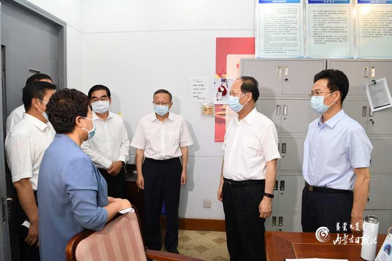 内蒙古第四医院是新冠肺炎救治定点医院,石泰峰走进医院详细了解疫情防控和患者救治工作情况。他强调,面对依然严峻的国内外疫情形势,全体医务人员要发扬成绩、再接再厉,大力弘扬伟大抗疫精神,切实把各项防控措施抓实抓细,同时加强对医务人员、服务保障人员的闭环管理,做好生物安全和医疗废弃物规范处置工作,毫不懈怠地打好疫情防控持久战。其他医疗机构也都要扛起扛牢疫情防控的重大责任,从严落实医疗机构首诊负责制和预检分诊制度,抓紧开展院感风险排查整改,坚决守住不发生院内感染的底线。要特别关心爱护长期奋战在一线的医务人员,帮助解决实际问题,确保他们身心健康。