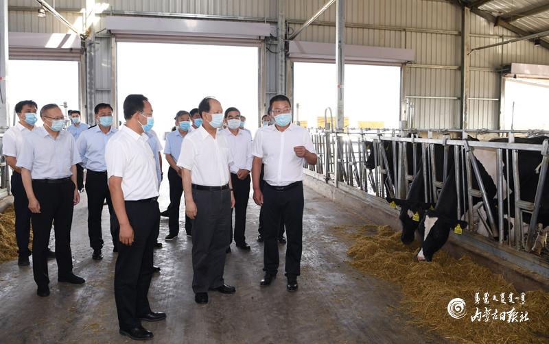 产业兴则经济兴。重大项目建设和产业发展情况如何,石泰峰非常关注。他首先来到中利优质奶牛养殖牧场,深入养殖牛舍、挤奶车间,详细询问项目规划建设、养殖规模、产业配套等情况。石泰峰强调,兴安盟要充分发挥自身优势,扎实做好牛的文章,大力推进规模化、集约化奶牛养殖,高度关注散户养殖经营情况,着力打造智能化、数字化奶业生产基地,加快推动全产业链发展,不断提升奶业现代化水平。要进一步完善利益联结机制,充分发挥龙头企业的带动作用和奶业产业的辐射效应,让更多群众获利受益,促进地区经济发展。在深入考察奥特奇蒙药公司药品研发、生产、销售等情况时,石泰峰强调,要更加重视标准化生产,着力打造拳头产品,推动蒙药产业高质量发展,让蒙药更好造福人民群众。在科右前旗双创产业园,石泰峰认真听取产业园建设以及在产业扶持、人才引进、管理服务等方面的情况介绍,强调要搭好平台、搞好服务,在不断解决问题中走出独具特色的新路子,让双创更好服务地方经济社会发展。