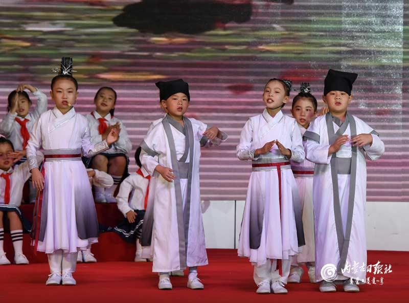 东胜区实验小学表演《悠悠诗情润我心》。记者韩卿立摄