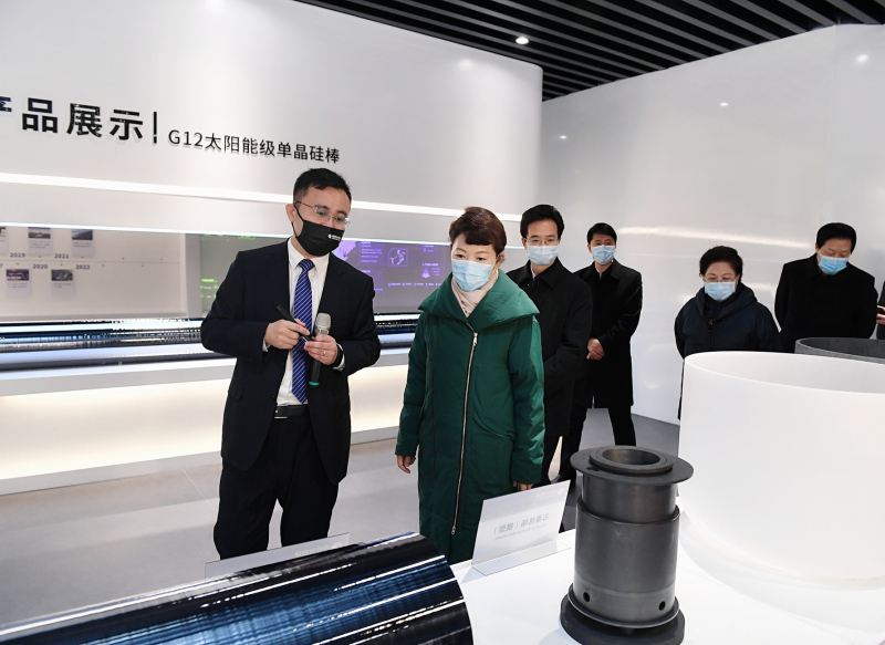 在中环光伏产业园,王莉霞深入生产车间,详细了解企业生产经营、项目建设情况。她指出,发展新能源要树立全局观念、系统思维,统筹推进产业结构和能源结构调整,统筹能源供应和消纳,统筹基地建设与服务运维,确保一体推进、相互促进,带动产业升级和经济转型。要围绕补链强链,按照“缺什么引什么、弱什么补什么”的原则,明确主攻方向,找准目标企业,大抓招商引资,积极引进产业链缺失项目、延伸项目、升级项目。要发挥骨干龙头企业的“链主”作用,积极开展以商招商、以企引企,吸引和集聚上下游组团式投资、集群式发展,打造出更多专业化、规模化的产业集群。各级政府要努力打造营商环境升级版,增强服务意识,因时因势推出更多有针对性的帮扶措施,及时解决企业反映的问题,推动企业高质量发展。
