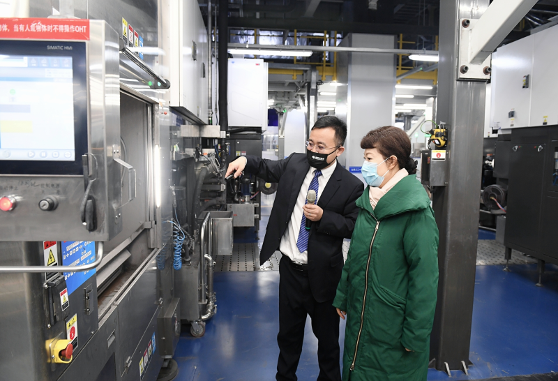 3月17日,自治区党委副书记、自治区主席王莉霞在呼和浩特市调研生态保护和光伏产业发展工作。在中环光伏产业园,王莉霞深入生产车间,详细了解企业生产经营、项目建设情况。记者韩卿立摄