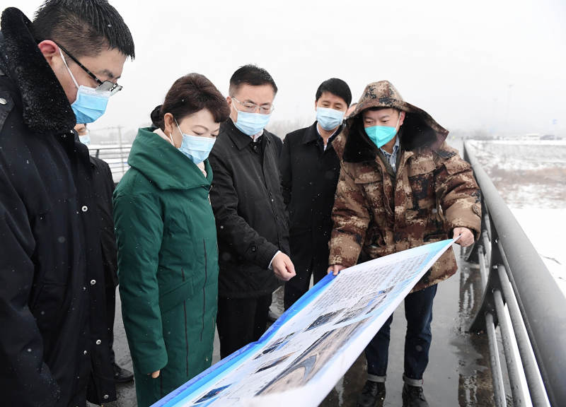3月17日,自治区党委副书记、自治区主席王莉霞冒雪来到呼和浩特市班定营污水处理厂排口处,现场调研大黑河主河道清理整治工作。记者韩卿立摄