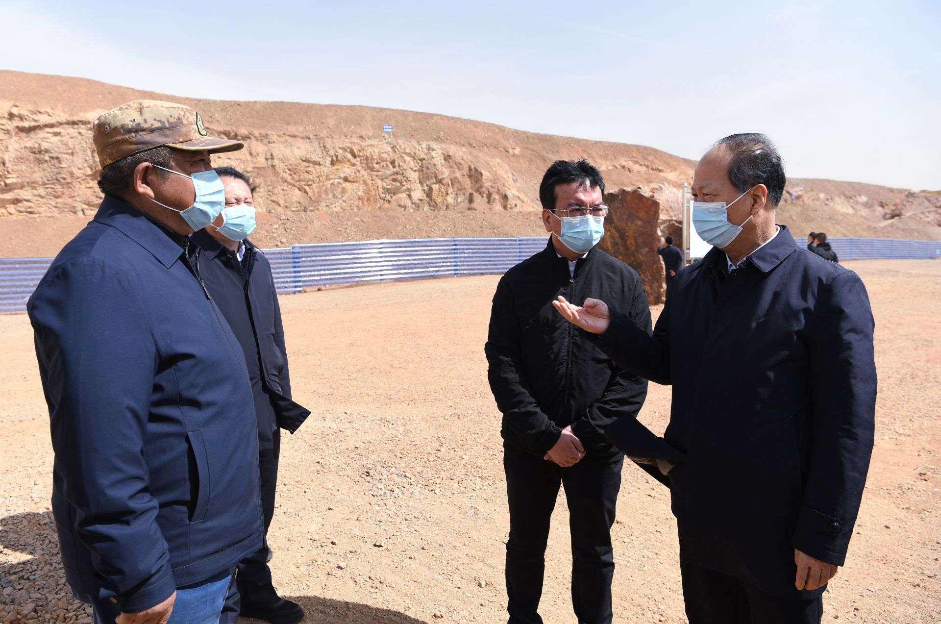 4月20日,自治区党委书记、人大常委会主任石泰峰来到乌兰察布市察右后旗乌兰哈达苏木陈家地村,现场督导中央环保督察组转交群众信访举报的磊鑫石英石矿有限公司违法开采问题整改工作。内蒙古日报社融媒体记者袁永红 摄