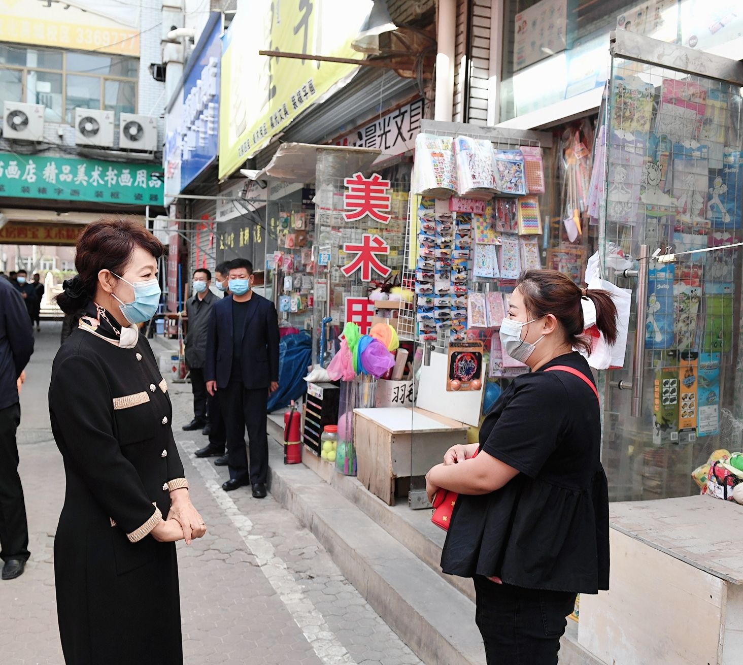 4月24日下午,自治区党委副书记、自治区主席王莉霞在呼和浩特市万达步行街,随机走进几家店面,向商户详细了解经营情况,勉励他们要坚定信心,度过难关。内蒙古日报社融媒体记者韩卿立摄