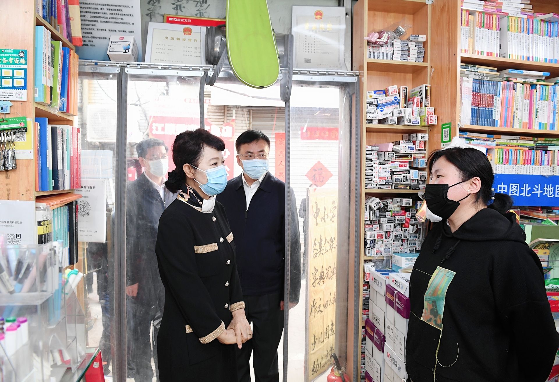 4月24日下午,自治区党委副书记、自治区主席王莉霞在呼和浩特市暗访调研市场主体复工复产情况。在赛罕区文化商城她详细询问商户经营情况。内蒙古日报社融媒体记者韩卿立摄