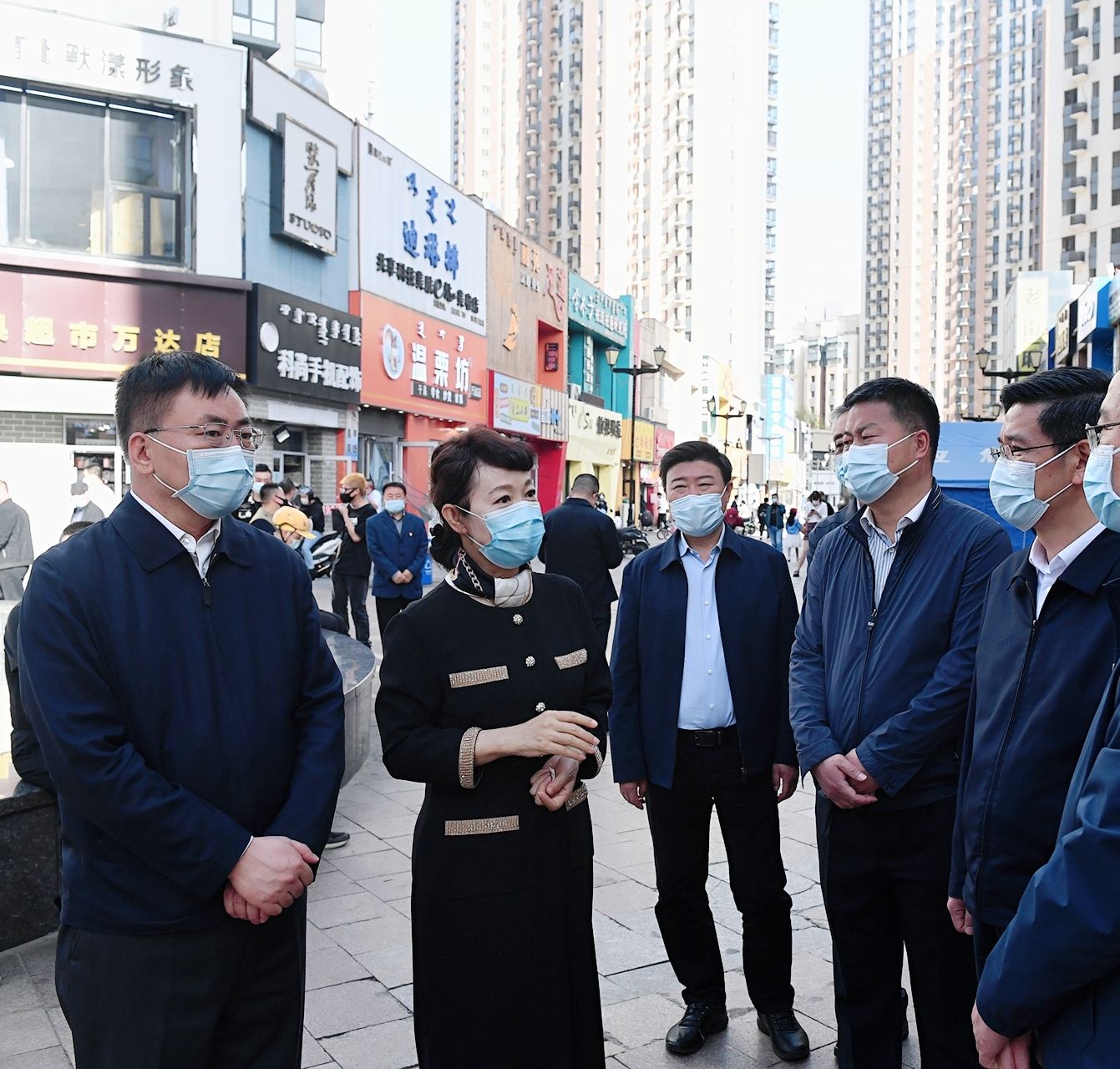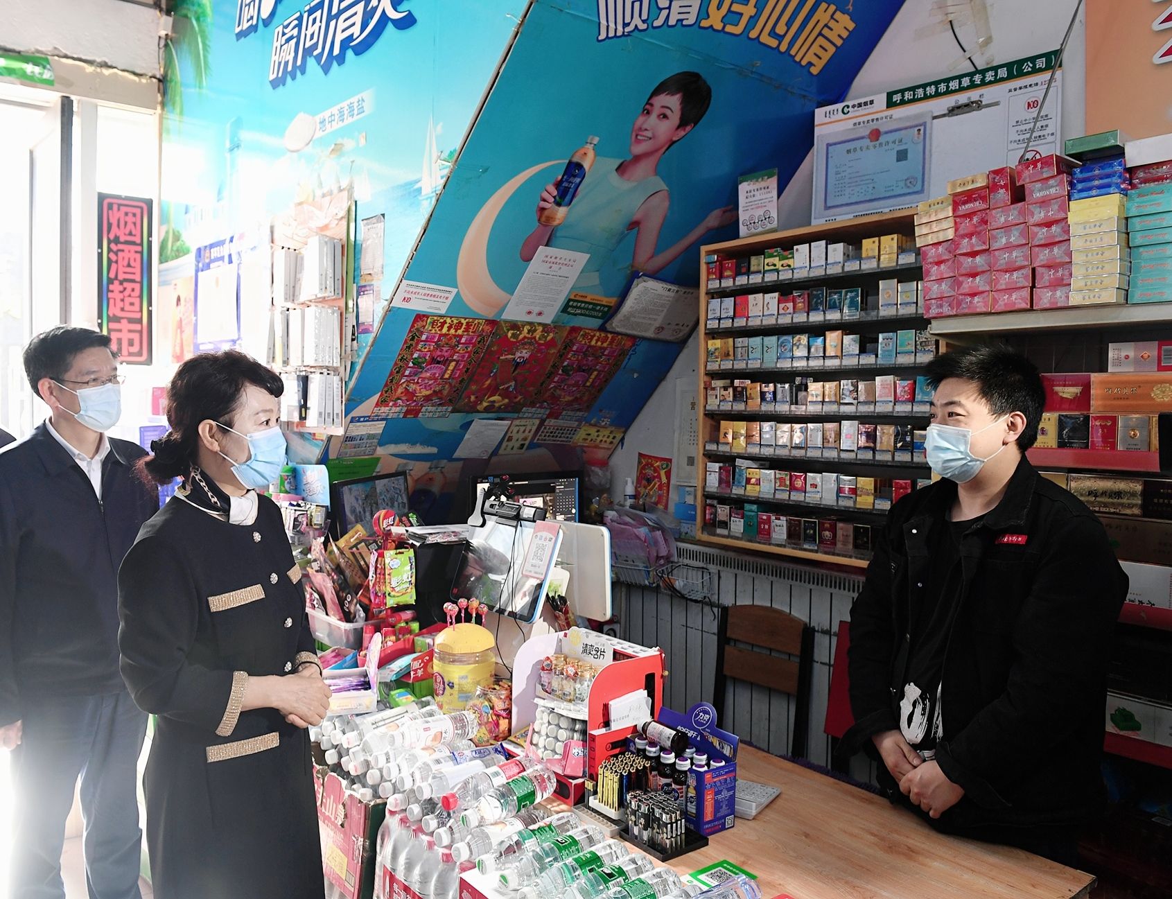 4月24日下午,自治区党委副书记、自治区主席王莉霞在呼和浩特市暗访调研市场主体复工复产情况时强调,只有疫情防得住,城市才能放得开。内蒙古日报社融媒体记者韩卿立摄