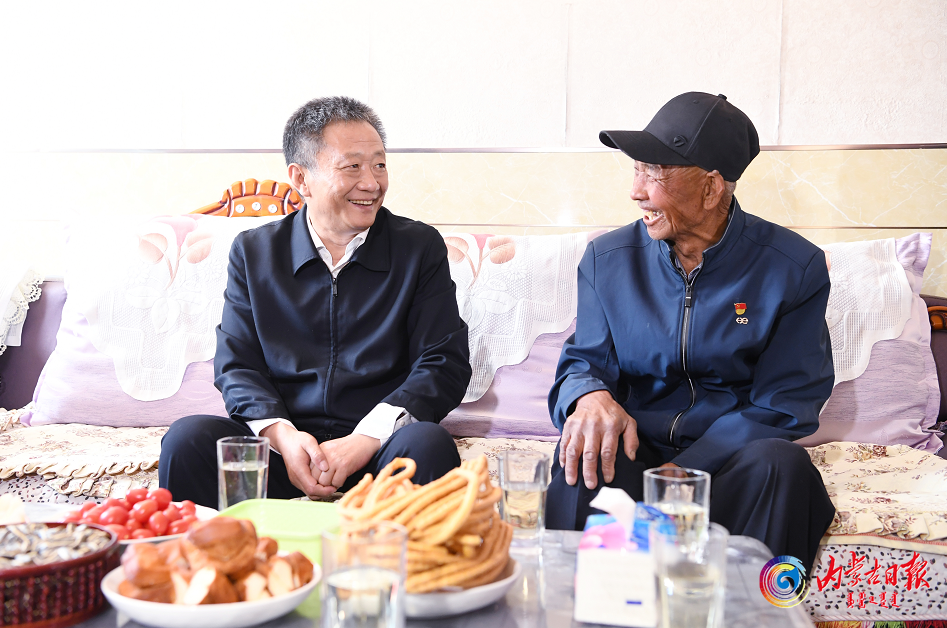 孙绍骋在庆丰村新村走访村民赵根德,与他们夫妇细算收入账。内蒙古日报社融媒体记者 袁永红摄
