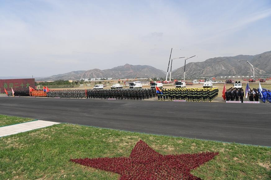 7月30日,自治区党政领导来到内蒙古军区综合训练场,参加“喜迎二十大·守护大北疆”全区军地应急力量融合建设成果演示暨“八一”军事日活动。记者袁永红摄