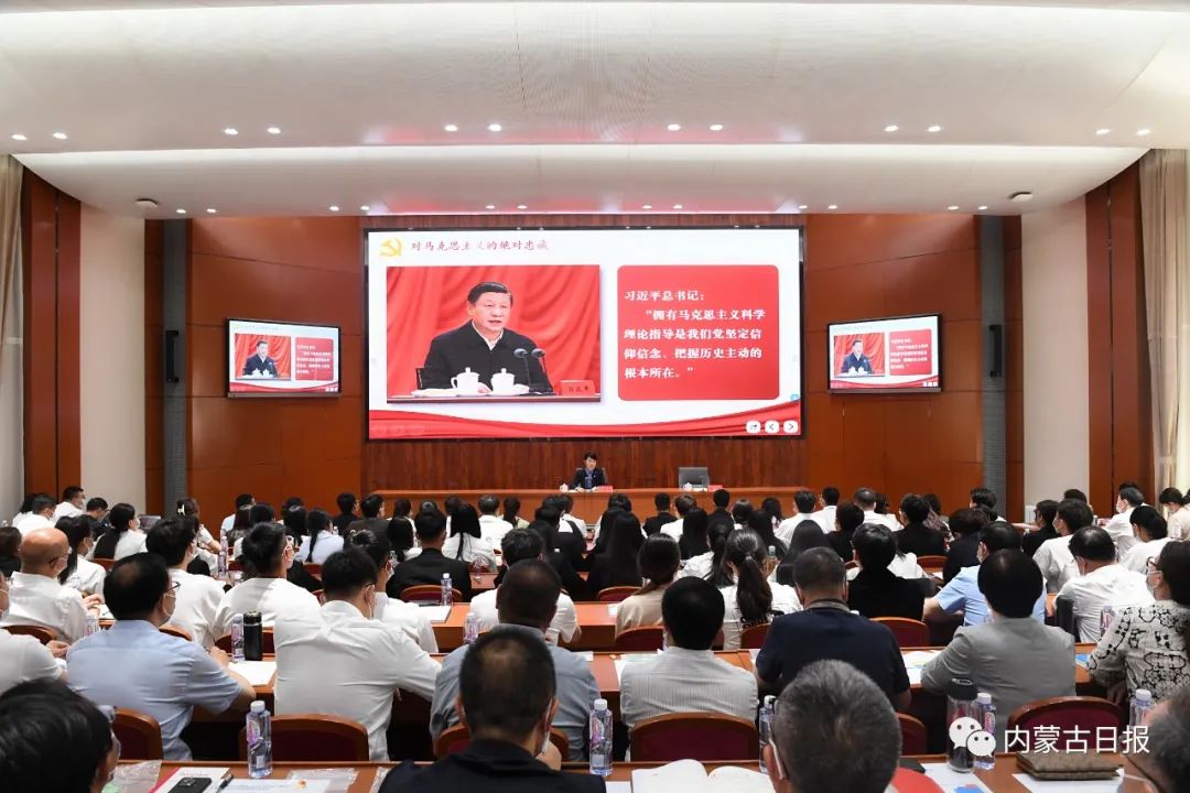 王莉霞深情回顾了习近平总书记关怀内蒙古的历程,结合总书记地方从政经历找寻习近平新时代中国特色社会主义思想的根和源、魂和纲,探寻这一重要思想的道理、学理、哲理。