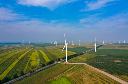 迎风而动的大风车是内蒙古草原上随处可见的风光。