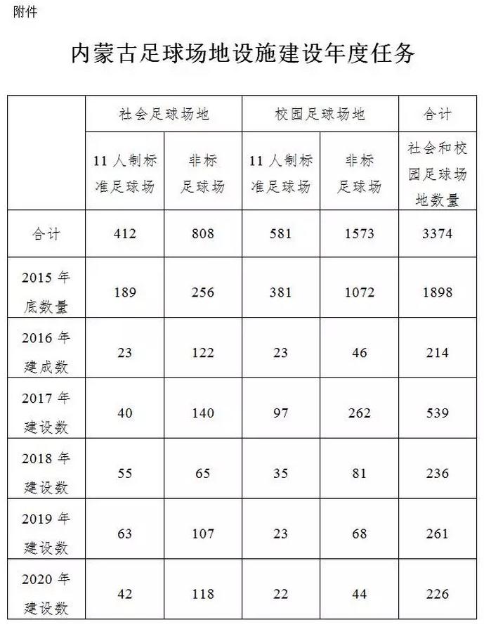附件:内蒙古足球场地设施建设年度任务