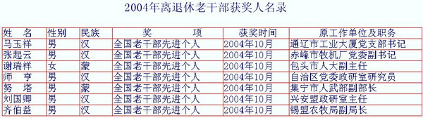 4月初召开全区老干部先进个人、先进离退休干部党支部表彰大会。在此基础上,推荐出席全国老干部“双先”表彰大会的代表。全区上下普遍开展表彰活动,为老同志老有所学、老有所教增添内容。本着自愿量力、个人志趣和社会需求相结合的原则,积极倡导和支持老同志继续发挥余热。