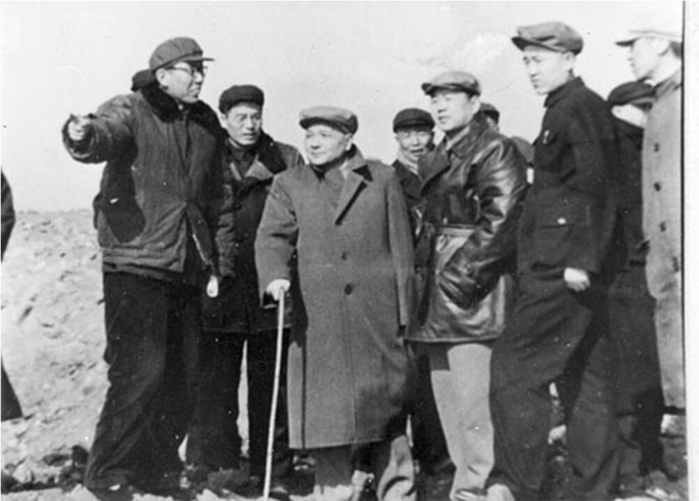 邓小平(左一)、彭真(左二)、乌兰夫(左三)在包钢听取汇报