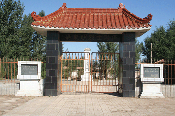 1958年10月,中共奈曼旗委、旗人民政府在村南沼边修建了梁东明烈士陵园。陵园为长宽各30米的方形,正门朝南,四周有围墙,东、西、北三侧均为民房,陵园中心矗立着纪念碑,纪念碑高7米,砖混结构。碑座为方形,边长为2.5米;碑身正面镌刻着“梁东明烈士永垂不朽”字样,背面刻着碑文。碑后为梁东明、刘俊轩及其他4位无名烈士墓,墓为砖混塔式结构。