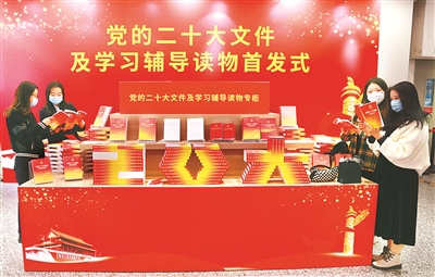 10月28日,读者在北京图书大厦翻看党的二十大文件及学习辅导读物。(图片来源:人民视觉)