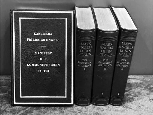 这批藏书共计81种107册,全部为狄茨出版社20世纪50年代出版的德文马克思主义经典著作。从内容上看,这批文献主要包括三类:一是马克思主义经典作家著作的部分全集本和单行本,包括《马克思恩格斯全集》第1至3卷,《列宁全集》第3至10卷、23卷,以及《共产党宣言》《哥达纲领批判》《资本论》《政治经济学批判大纲》《自然辩证法》《社会主义从空想到科学的发展》《国家与革命》等;二是威廉·皮克本人及其战友们—德国马克思主义思想理论家、德国工人运动的著名活动家、民主德国的领导人们的著述,包括威廉·皮克自己的著作《威廉·皮克演说论文集》4卷本、罗莎·卢森堡的《罗莎·卢森堡演讲著作精选》两卷本、弗兰茨·梅林的《中世纪结束以来的德国史》《莱辛传奇》、克拉拉·蔡特金的《回忆列宁》《德国无产阶级妇女运动史》、恩斯特·台尔曼的《恩斯特·台尔曼关于德国工人运动史演讲论文集》、瓦尔特·乌布利希主编的《德国工人运动史》前4卷、奥托·格罗提渥的《奥托·格罗提渥演讲著作集》3卷本等;三是苏联领导人加里宁的《论共产主义教育》以及马克思主义理论家普列汉诺夫的《论一元论历史观的发展》《唯物主义史论丛》《联共(布)党史简明教程》等。