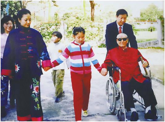 习仲勋和习近平一家。前排左起:彭丽媛、习明泽、习仲勋,推轮椅者为习近平